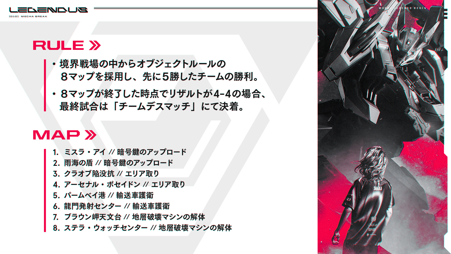 第10回目では、Amazing Seasun Games開発の近未来型SFメカゲーム「Mecha BREAK」を用い『LEGENDUS Mecha BREAK Supported by Amazing Seasun Games』を開催しました。