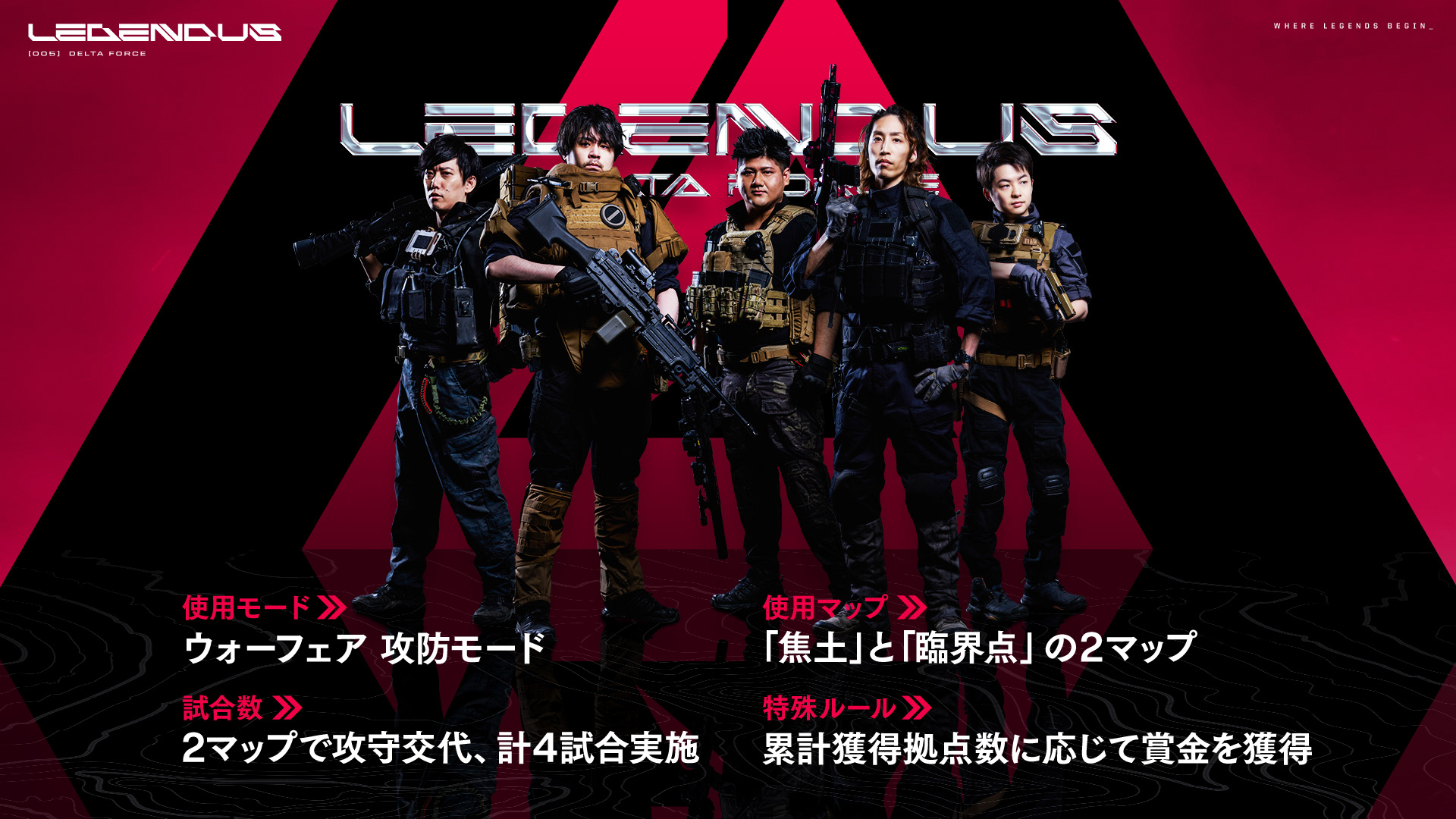 第5回目では、ゲーム開発スタジオTiMi Studiosが手掛ける名作「Delta Force」のリブート作を用いた『LEGENDUS Delta Force Powered by Team Jade』が開催されました。28対28の総勢56名のストリーマーが賞金獲得を目指して戦います。