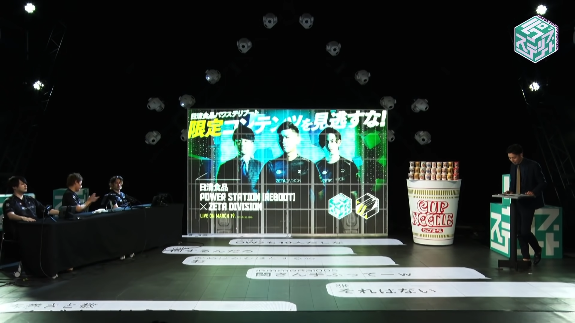 『日清POWER STATION[REBOOT] × ZETA DIVISION』は日清の提供の元、「日清POWER STATION[REBOOT] 」のスタジオを生かし、VRゲームでおいしい笑いを提供するオンラインイベントです