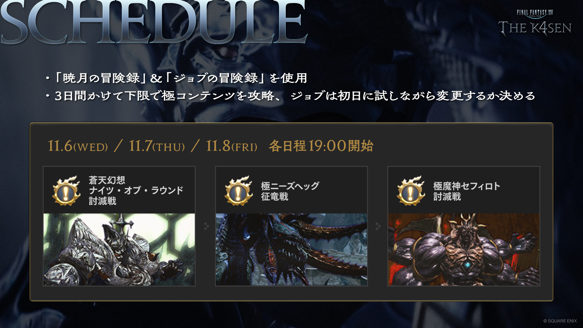 第26回目は、スクウェア・エニックスが開発したファイナルファンタジーシリーズ第14作目にあたるMMORPG「ファイナルファンタジーXIV」を用いた『ファイナルファンタジーXIV The k4sen』が開催されました。本企画は2度目を迎え「蒼天のイシュガルド」編に突入しました。
